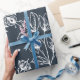 Celebrate the magical and festive holiday season with our custom holiday wrapping paper. Our elegant holiday design features our own hand drawn leaf pattern snowflake pattern against a deep navy blue background. Customize with your initial. All illustrations contained in this elegant Christmas leaf pattern snowflake wrapping paper are hand-drawn original artwork by Moodthology.
