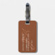 Elegant leather texture (please note no real leather will be used) men's monogram luggage tag. Design featuring black stripe across brown leather texture background and name. Personalize with contact details and monogram on the back. Perfect as a gift.