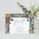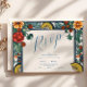 Elegant Lemon Botanical Blue Mediterranean wedding RSVP Card
