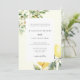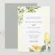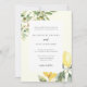 This simple elegant Mediterranean inspired wedding invitation features watercolor lemons with elegant green leaves and an olive branch with a light yellow border. Perfect for an outdoor or Italian garden themed wedding.