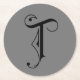 Elegant Letter T Monogram Black on Grey Round Paper Coaster