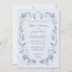 These elegant, light blue and dusty blue wedding invitations feature a vintage blue watercolor floral frame with lovely botanical leaves, and stylish calligraphy along with classic text. The French look blue toile design will add a romantic and chic touch to your wedding stationery.