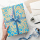Beautiful and elegant light blue and gold mandala pattern gift wrapping paper.