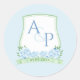 Elegant Light Blue Green Botanical Wedding Crest Classic Round Sticker