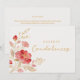 This sympathy design features an elegant composition with flowers in light red tones and golden effects placed in the corner of the card, creating a sober, respectful, and refined atmosphere. The color palette conveys serenity and warmth, while the floral elements provide a delicate and timeless visual balance.