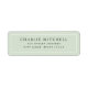 Light sage green or custom colour return address labels with a thin white border. Fonts and colours can be customized with the design tool.