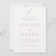 Elegant wedding invitation featuring a classic design with your monogram in a script font along with your names and details in a traditional serif font.