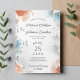 Modern trendy black and white line art style chic hand-drawn floral and foliage sketches wedding invitation featuring watercolor pastel dusty blue and peach botanical blooms. +++++++++ The invitation is suitable for spring summer fall garden outdoor or backyard non-traditional weddings.