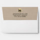 Send your mail in style with this elegant monogrammed envelope. The classic block typography and sleek design make it a perfect fit for both personal and professional correspondence. The envelope features a brushed gold medallion with your custom monogram in the centre on a beige linen print background. The return address is printed on the back in a coordinating font. This envelope is perfect for adding a touch of sophistication to your mail and making it stand out from the rest.