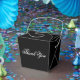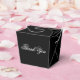 Classy and elegant picnic style guest favour box with silver handle, perfect for any special event including wedding favour or corporate thank you. Personalize text, or text is removable. The black background can be changed to any colour.