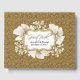 Elégant livre d'hôtes mariage de couleur or réalisé dans un motif en cercle doré. Une parties scintillant dorée encadrée de texte blanc est décorée de fleurs en ivoire à l'extérieur. Le texte du script graphique en ton or indique Guest Book. Personnalisez le texte personnalisé noir pour votre journée spéciale.