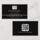 Modern, elegant, black business cards with your custom logo, and QR code on the back. On the front is a printed golden color gradient dividing line (not real foil). Fonts, font colors and background colors can be changed with the design tool.