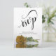 These beautiful RSVP cards will make it easy for your guests to respond to your wedding invitation. They feature an elegant design with fancy script calligraphy and a single long-stemmed gold ochre coloured rose reflecting in a pool of water with waves and ripples. The back of the card is a form for your guests to fill out and return indicating if they can attend or not, the number of guests they're bringing, and their choice of meals. There is also space for a website so your guests can respond online if it's more convenient for them.
