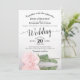 This gorgeous wedding invitation features a modern floral design with a single long stemmed pink rose lying on its side reflecting in a pool with waves and ripples. The design is simple, elegant, romantic and sophisticated, with lacy script calligraphy and fully customizable content.