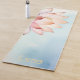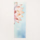 This yoga mat features a refined lotus flower illustration, delicately rendered in soft blush against a calming sky-blue background. The composition is intentionally asymmetrical, with the lotus partially revealed along the edge, creating a sense of quiet movement and modern elegance.