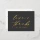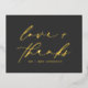 Elegant Love and Thanks Script Wedding Black Gold Foil Holiday Postcard