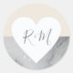 elegant love heart with bride & groom initials classic round sticker