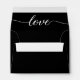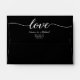Description: Elevate your wedding stationery with our Elegant Love Script Return Address Black Custom Wedding Envelopes! These sophisticated envelopes feature an elegant "love" script font on the flap and interior adding a touch of romance to your wedding correspondence. Plus a classic font for the return address for easy readability . Customized with your names and address, they exude timeless charm and refinement. These envelopes ensure that your invitations and RSVPs are delivered in style. Make a statement with our Elegant Love Script Return Address Black Custom Wedding Envelopes and set the tone for your special day.
