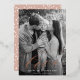 Elegant Valentine's Day card featuring your vertical photo with "Love" displayed in a rose gold foil calligraphy script. Personalize the photo Valentine's Day card with your custom greeting and family name. The foil Valentine's day card reverses to display a rose-beige and white heart pattern.