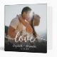 Modern Elegant Love Script Custom Personalized Wedding Photo Album Memories Binder. Featuring a pretty "Love" hand lettered calligraphy script with swash tail font, bride and groom’s name and wedding date. On the spine „our wedding” in hand lettered script on black background. Easy to customize with your favourite wedding photo (on front and back side) and your own details. Use this custom binder as a wedding photo album, wedding planner, scrapbook or give away as keepsake gifts with wedding memories for your parents, grandparents and friends.