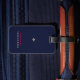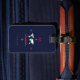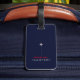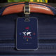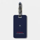 Elegant and personalized dark blue luggage-tag with image of the map of world