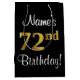 Elegant, Luxurious, Faux Gold Look 72nd Birthday Medium Gift Bag