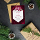 magenta pink and burgundy flowers and leaves wedding gold foil invitation. This pretty gold foil wedding design showcases a gold frame with a watercolor roses and foliage in pink and bugandi colours. The back is a rose in magenta pink colour.
