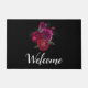 Welcome doormat with a beautiful image of a bouquet of magenta and pink flowers.
