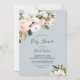 This elegant magnolia blue grey baby shower invitation is perfect for a modern classy baby shower. The soft floral design features watercolor blush pink peonies, stunning white magnolia flowers and cotton with gold and green leaves in a luxurious arrangement on a light blue grey background. Personalize the back of the card with the name of the guest of honour and the event.