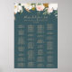 This elegant magnolia teal alphabetical seating chart poster is perfect for a modern classy wedding. This sign can be used to organize your guests alphabetically or by table number. The moody floral design features watercolor blush pink peonies, stunning white magnolia flowers with gold and green leaves in a luxurious arrangement on a teal background. This wedding poster includes enough room for up to about 120 guests. Make room for more (or less) guests by clicking the "customize" button and decrease or increase the size of the font. In addition to the placement of each guest, personalize this sign with the names of the bride and groom and the wedding date.