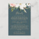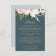 This elegant magnolia teal details enclosure card is perfect for a modern classy wedding. The moody floral design features watercolor blush pink peonies, stunning white magnolia flowers and cotton with gold and green leaves in a luxurious arrangement on a teal background.