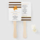 Elegant fall wedding ceremony and party program hand fan. It displays a lovely orange maple leaf and brown and white stripes. Your text is on a white frame.