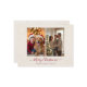 Share your holiday joy with this elegant 2-photo Christmas card, designed with a warm ivory marble background, delicate gold accents, and classic berry red script.