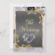 This elegant wedding announcement features a grey center on a black and white marble background, framed with gold roses and leaves, embellished with a silver scroll heart. Designed to coordinate with the "Elegant Marble, Gold Leaves Frame & Scroll Heart" Wedding Collection. To change details, click «Personalize». To move the text or change the text size, font, or color click «Click to customize further»