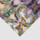 This is a fun elegant tissue paper featuring Mardi Gras mask, feathers and decorative objects on an ink oil background. The colours used in the design are the traditional Mardi Gras colours, purple, green and gold. This tissue paper is perfect to wrap gifts for a variety of occasions or to use for decoupage projects.