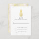 Ces cartes RSVP de mariage élégantes montrent un faux ananas en or sur un arrière - plan blanc. Le dos de la carte a des bandes d'or imparfaites, mais vous pouvez les enlever et laisser le dos vide si vous le souhaitez, en customisant l'article. Veuillez me contacter si vous avez besoin d'aide.