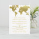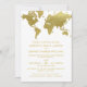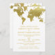 Les invitations de mariage élégantes inspirées du voyage vintage présentent une carte du monde. Couleur blanc et fausse feuille d'or.
