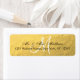 Élégant Monogramme noir Mariage Adresse de retour Design d'étiquette avec une photo IMPRIMÉE de feuille d'or sur un papier mat comme arrière - plan, avec un monogramme de script blanc et du texte noir. Étiquettes d'adresse de retour du Mariage Monogram personnalisables pour vos enveloppes d'invitation ou vos cartes de remerciement mariage. Par Elke Clarke© pour MonogramGallery à Zazzle. Customisez avec votre initiale monogramme, vos noms et vos coordonnées. Pour d'autres effets photo arrière - plans, contactez le propriétaire du magasin.