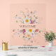 Un panneau acrylique de bienvenue magnifiquement conçu avec des fleurs délicates d'aquarelle dans des tons pastel doux. La typographie élégante et la disposition minimaliste créent une atmosphère sophistiquée et romantique, idéale pour les mariages, les anniversaires et les fêtes spéciales. Entièrement personnalisable avec des noms, des dates et des détails personnels pour accueillir chaleureusement les clients avec une touche moderne et élégante.