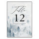 Elégante carte de numéro de table de mariage d'hiver avec des pins gris brumeux et bleu foncé et des montagnes. Personnalisez les cartes de numéro de table de pin en ajoutant le numéro de table, vos noms et la date du mariage. Conçu pour coordonner avec notre collection Elegant Winter Forest mariage.