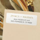 Une teinte dorée simple et chic sur le blanc avec votre adresse dans un gris foncé rend ces étiquettes d'adresse de retour une façon élégante d'annoncer votre jour spécial, et ils sont également très utiles pour un usage général! Vous pouvez modifier la couleur de n'importe quel texte-si par exemple vous préférez le noir pour l'adresse ou toute autre couleur pour l'adresse ou les noms, vous pouvez facilement le modifier. Essayez différentes teintes, et vous pouvez toujours revenir aux couleurs que nous avons choisies dans notre exemple de modèle. Et si vous utilisez deux prénoms avec le symbole + entre les deux comme nous l'avons fait, vous pouvez supprimer l'espace des deux côtés du symbole pour rapprocher les noms. Vous pouvez également modifier la police. Utilisez les outils de conception pour customiser ce design et le rendre unique. Nous avons une grande sélection d'étiquettes d'adresses de retour, veuillez consulter notre collection d'étiquettes d'adresses de retour pour des idées et des inspirations!
