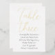 Cette élégante carte de table personnalisée pour un mariage ou un autre événement spécial présente un design simple et moderne. Le numéro de table est imprimé dans une police de style script avec un véritable papier doré. Les noms des clients sont imprimés ci-dessous. Vous pouvez personnaliser cette carte de table pour inclure vos propres informations d'événement ou d'autres textes personnalisés.
