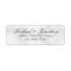 Élégant Mariage Marbre blanc Retourner Adresse Label. avec le nom de mariée et marié en gris élégant script classique avec adresse en gris classique serif style de police sur blanc marbre arrière - plan.