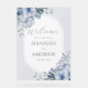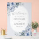 Elégant mariage floral bleu poussiéreux bienvenue acrylique signe. Ce design présente des fleurs d'aquarelle bleu clair et un cadre ovale moderne.