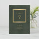 Moderne classique chasseur noir vert et or cadre tendance minimaliste typographie personnalisées numéros de table de mariage sur un arrière - plan vintage. ++++++++++++++ Le papier à lettres mariage correspondant est disponible dans la collection. +++++++++++++ Veuillez noter que pour commander différents numéros et listes, vous devez les customiser et les mettre dans le panier un par un (une carte sans 1, une autre sans 2, etc).
