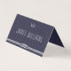 Cartes de réglage des lieux pliés bleu marine et blanc (tente horizontale) avec texte blanc et ancres bleues imprimées sur arrière - plan bleu marine. Les dimensions des cartes sont de 2 pouces x 3,5 pouces (plié) et de 4 pouces par 3,5 pouces (déplié).