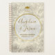 Calligraphie moderne, élégant, simple livre de wedding planner en marbre gris avec monogramme de couronne d'or - initiales de mariée et de mariée.