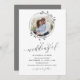 Cet élégant faire-part de mariage photo présente votre photo en haut, entourée d'une simple couronne gris fusain. Il est jumelé à un script de calligraphie romantique.