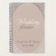 Livre de wedding planner rose élégant et poussiéreux, avec cadre de tourbillons gris argenté.