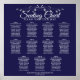 Ce magnifique tableau de 11 sièges mariages vous permettra de trouver facilement les sièges qui vous sont assignés à la réception. Dispose d'un design simple mais élégant avec du texte blanc sur un arrière - plan bleu marine et un faux feuillage argenté vintage floral en filigrane.